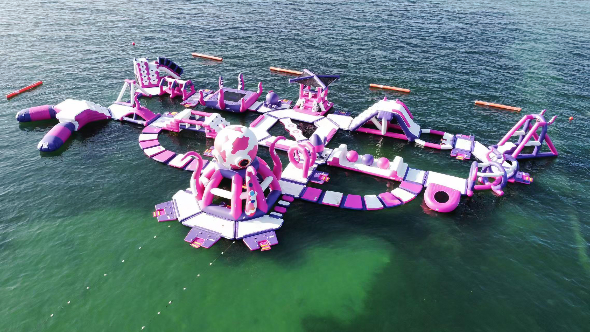 Make a splash at your next outdoor event with the Outdoor Fun Pink Inflatable Water Park – a high-energy, visually stunning aquatic attraction designed for maximum engagement and safety. Whether you're hosting a summer festival, corporate family day, resort activity, or large-scale public event, this pink-themed inflatable water park delivers unforgettable fun for kids and adults alike.