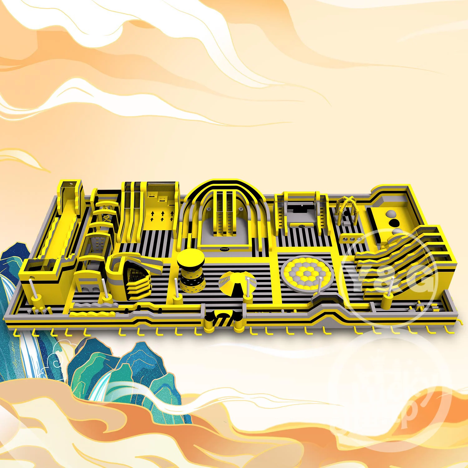Experience the ultimate blend of excitement and safety with our Extreme Black & Yellow Inflatable Park — a bold, large-scale playground designed to thrill visitors of all ages.
